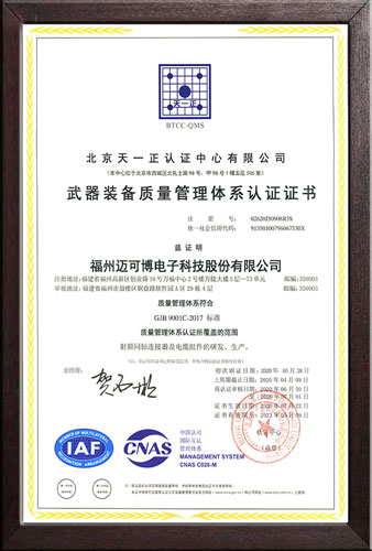 武器裝備質(zhì)量管理體系認(rèn)證證書